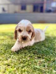 Mum is a ruby Cockalier. Dad is an orange roan Cocker Spaniel.