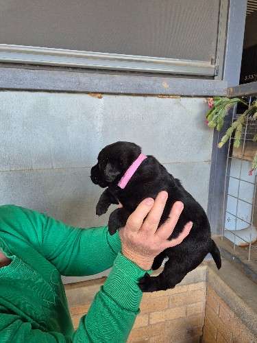 5 black labrador puppies. 3 male and 2 female. Mother is a yellow lab and the father is a chocolate lab. Puppies were born 21/8/25