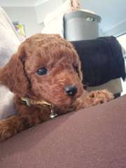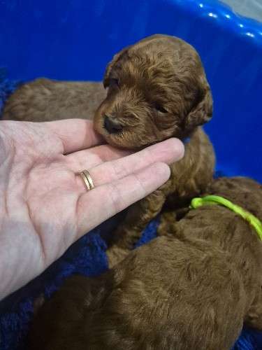 Pups are being raised in a family environment, they have a non shedding , beautiful red curl, raised inside amongst house hold noises , children , babies and other animals . They have been introduced to birds and cats .We are exposing them daily to everyday noises such as sirens , knocking , horn beeps to ensure well social , and confident pups.